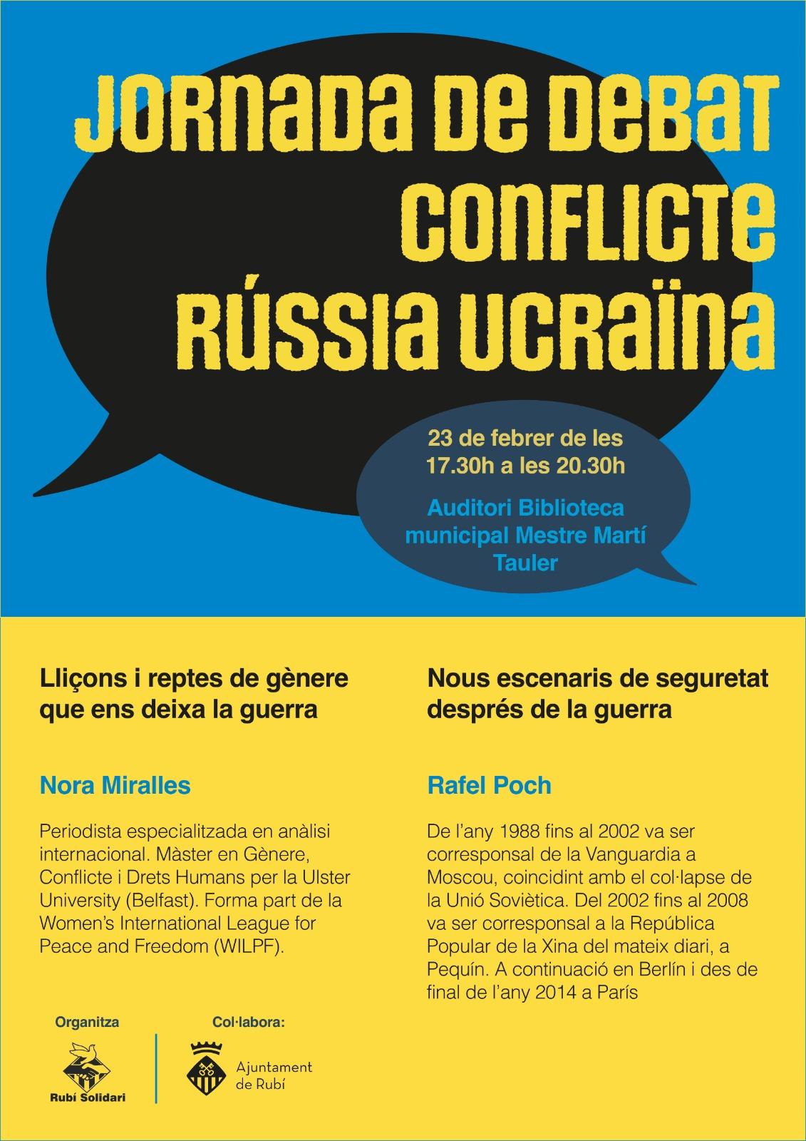 Cartell de la jornadahttps://www.rubi.cat/ca/actualitat/agenda/jornada-de-debat-conflicte-russia-ucraina-1/file/viewhttps://www.rubi.cat/ca/actualitat/agenda/jornada-de-debat-conflicte-russia-ucraina-1/file/@@download/image/Cartell Jornada dia 23.jpeg