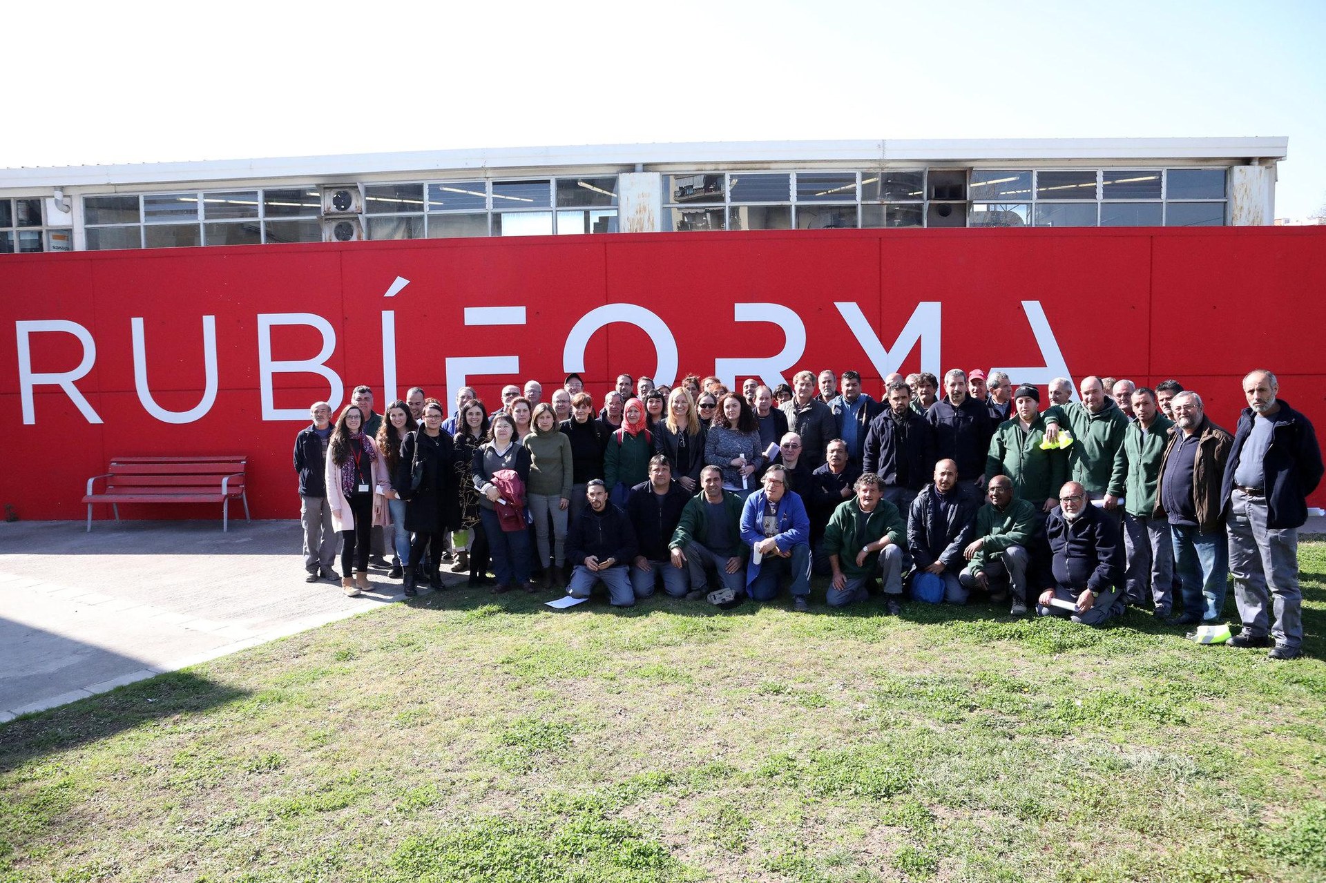 L’alcaldessa amb les 61 persones que es van contractar al febrer a través de Plans d’Ocupació (foto: Ajuntament de Rubí – Lali Álvarez).