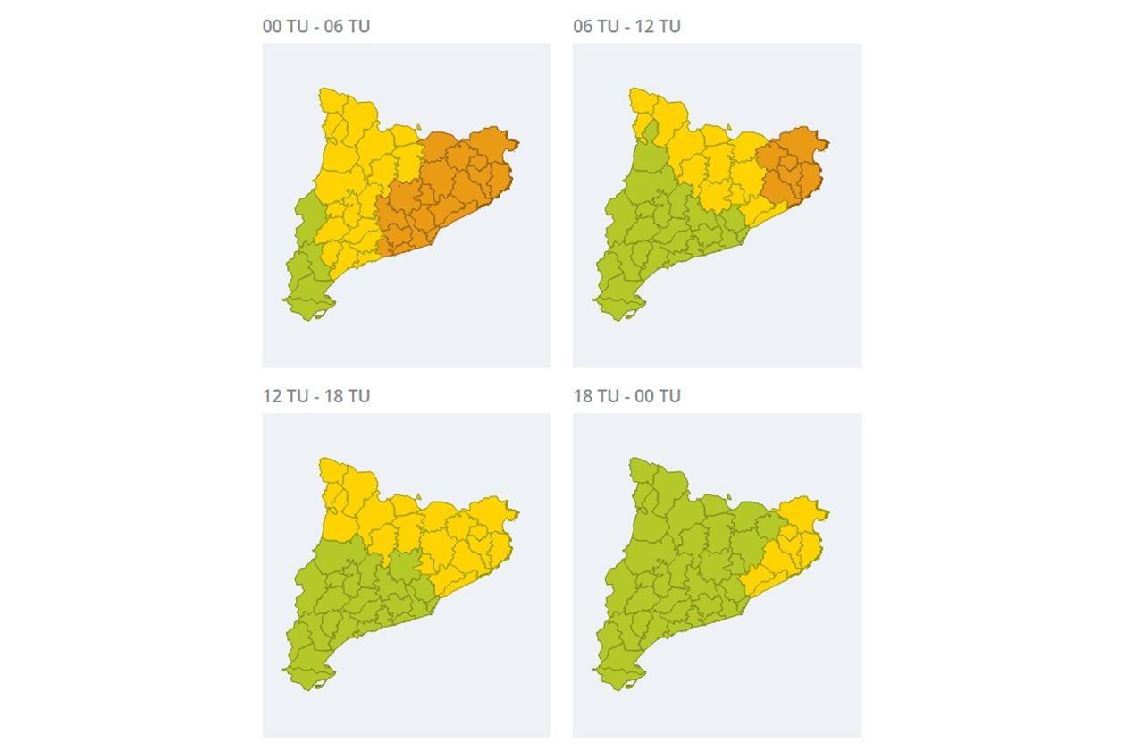Les precipitacions, que podrien superar els 40 mm en 30 minuts, es concentraran entre la mitjanit d’aquest dimarts i les 6 h de dimecres