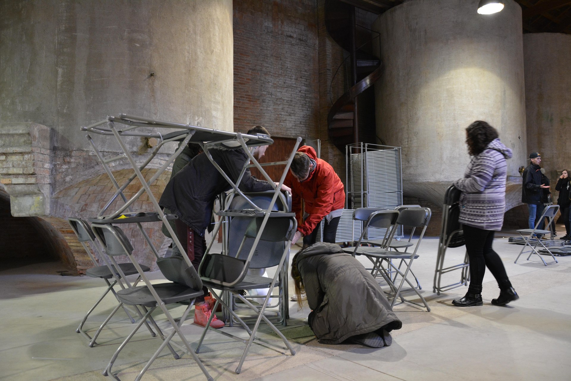 A partir d’aquests tallers, els alumnes desenvoluparan, per grups, les seves creacions. El procés creatiu dels estudiants es podrà veure al Celler a partir del 16 de desembre. Una selecció de fotografies i un muntatge audiovisual mostraran la feina dels alumnes. D’aquesta manera, la mostra ‘Presències’ creixerà amb un espai que se suma als dos actuals. Una d’aquestes zones està dedicada a les composicions on Ribera juga amb la llum i la foscor i, a l’altra, juga amb els espais i les absències amb la cadira com a símbol.