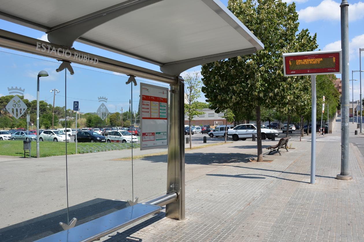 Diferents pantalles LED informen els usuaris de les línies que s’aturen a cada parada i del temps d’arribada dels vehicles, entre d’altres