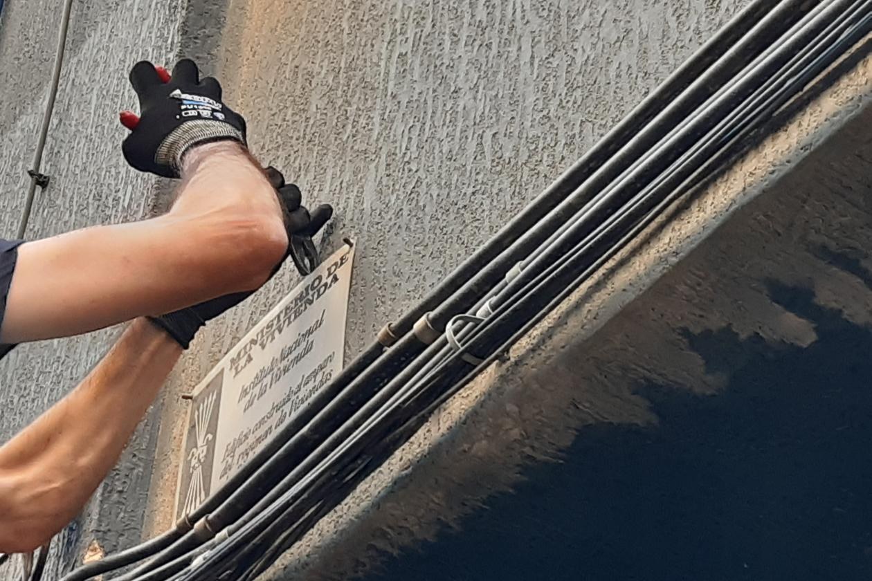 Les plaques se substitueixen per altres on s’informa que l’edifici va ser construït en règim de protecció oficial (foto: Ajuntament de Rubí)