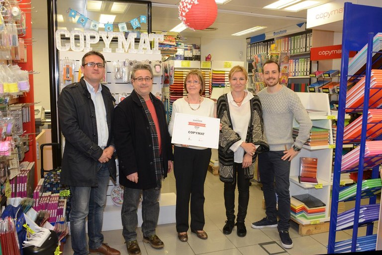 L’alcaldessa, Ana María Martínez, el regidor de l’Àrea de Desenvolupament Econòmic Local, Rafael Güeto, i el president de la Federació d’Associacions de Comerciants i Gremis de Rubí, Miquel Ortuño, han lliurat aquest dimecres els premis del Concurs d’aparadors de Nadal, organitzat per l’entitat de botiguers durant les darreres festes nadalenques. Els comerços que han obtingut el reconeixement han estat la impremta Copymat, la botiga per a mascotes Sweet Doggy, la llibreria Launamar, la parada del Mercat Municipal Lo Salat, la floristeria Carmen Art Floral i la farmàcia Piera.