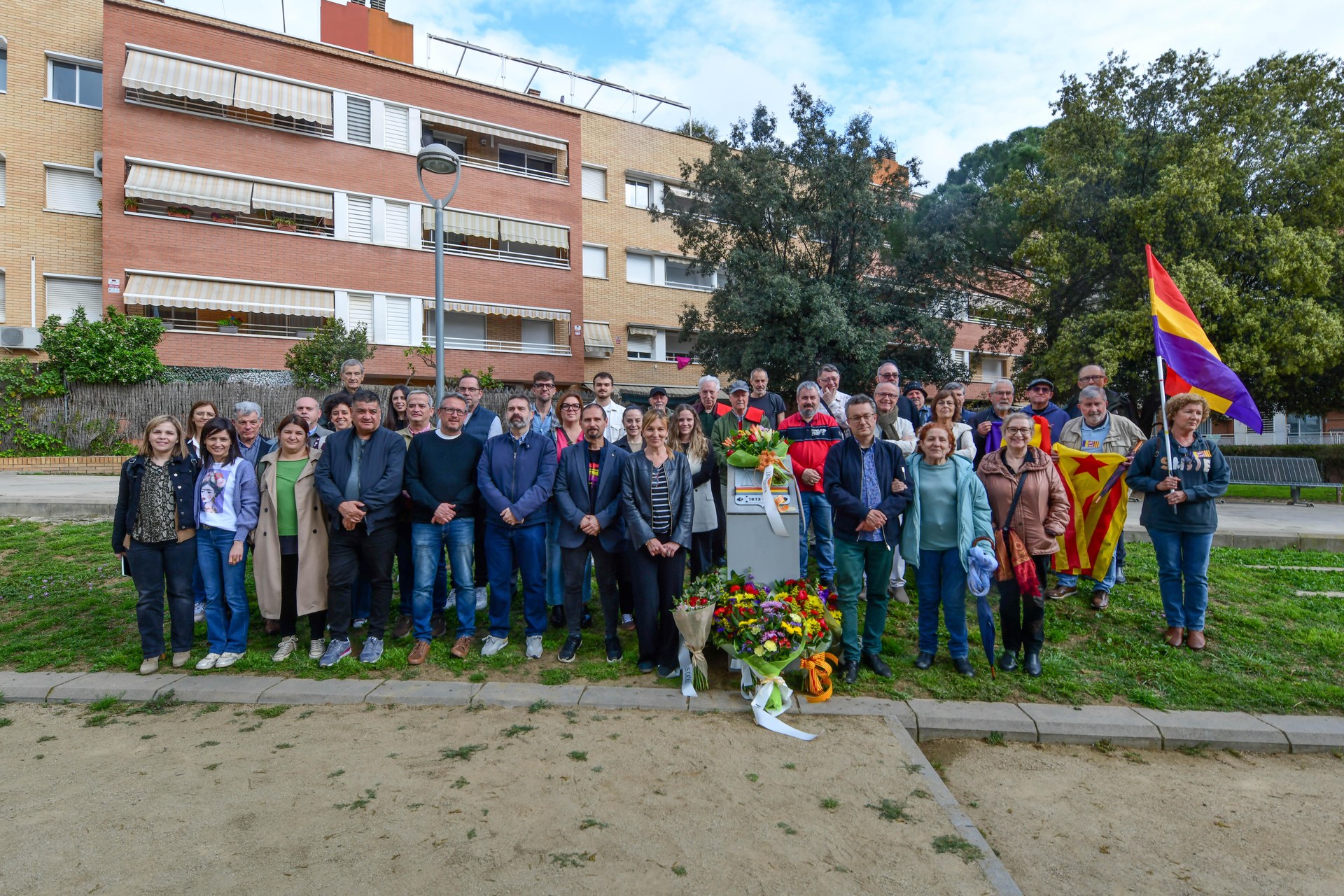 L'ofrena floral al monòlit de la plaça de la República (foto: Ajuntament de Rubí - Localpres)