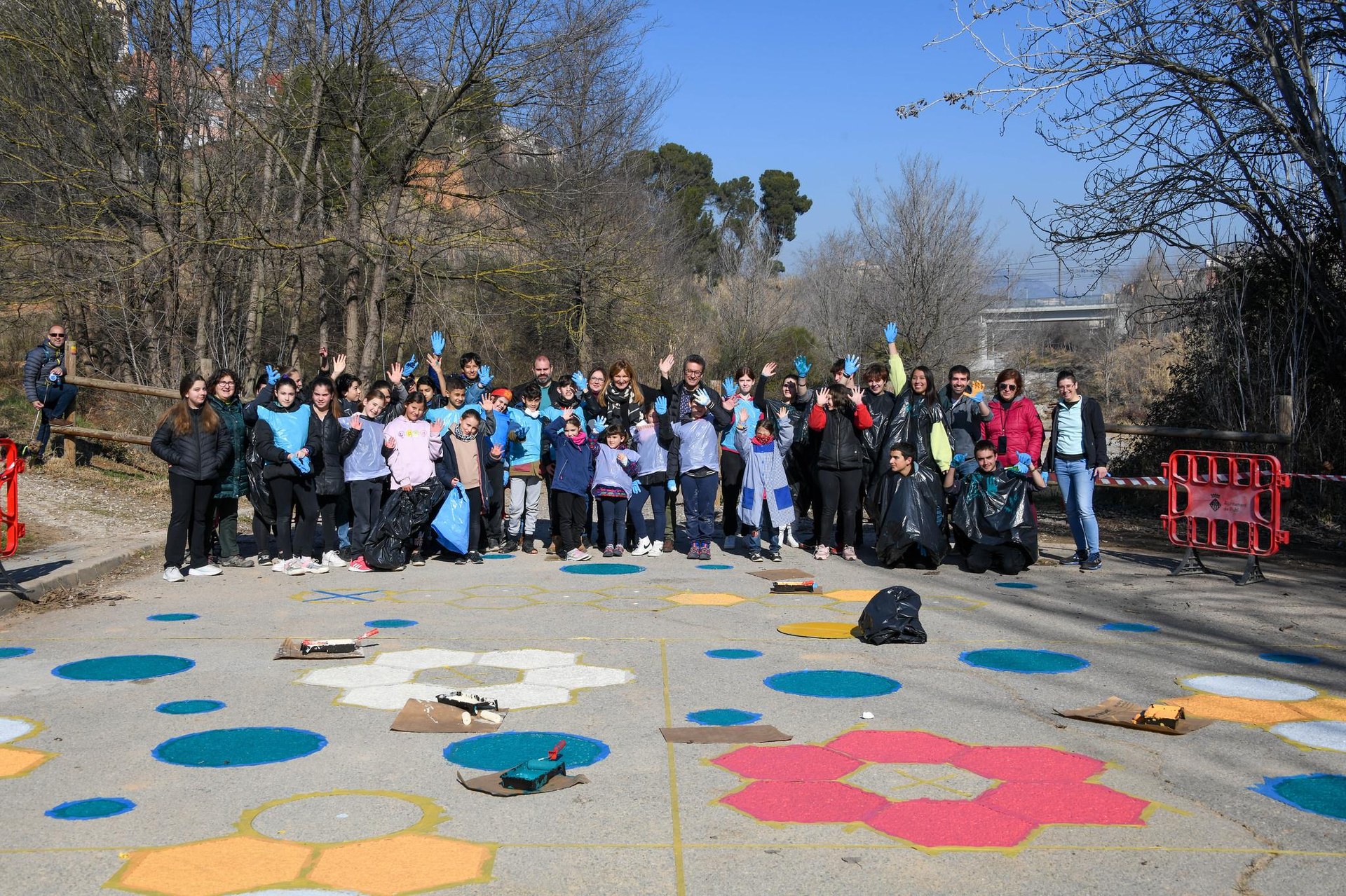 Els i les integrants del Consell han pintat un mural amb motius geomètrics que representen diversos elements naturals d’aquest espai com les abelles, l’aigua i les flors. Aquesta iniciativa culmina la creació d’un espai verd obert a la ciutadania i que ofereix tres zones diferenciades. S’ha creat una zona de pícnic, un espai d’espera, una part amb aparells de calistènia i una altra amb pictogrames. També s’ha actuat per assentar els camins que travessen la zona. La jornada ha comptat amb un esmorzar a base de fruita, gentilesa dels paradistes del Mercat Municipal.