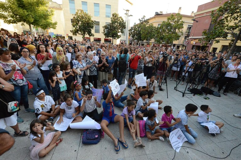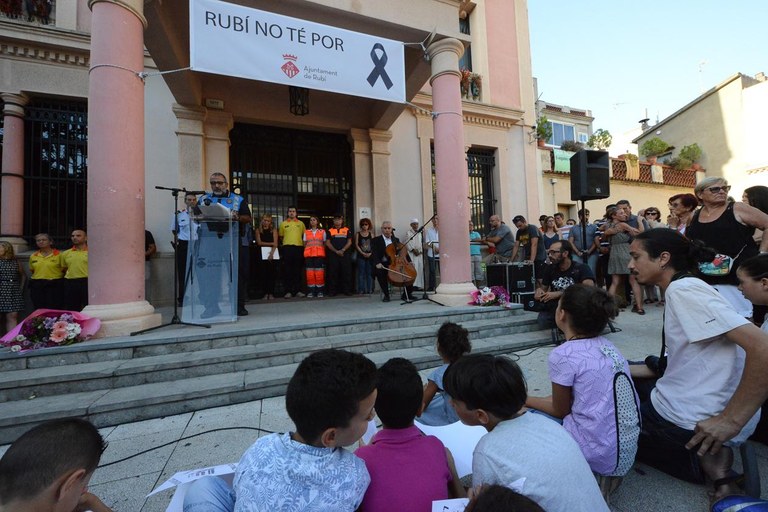 Unes 700 persones s’han aplegat a la plaça de Pere Aguilera i el seu voltant per rebutjar els atemptats de Catalunya i fer costat a la família de les dues víctimes rubinenques