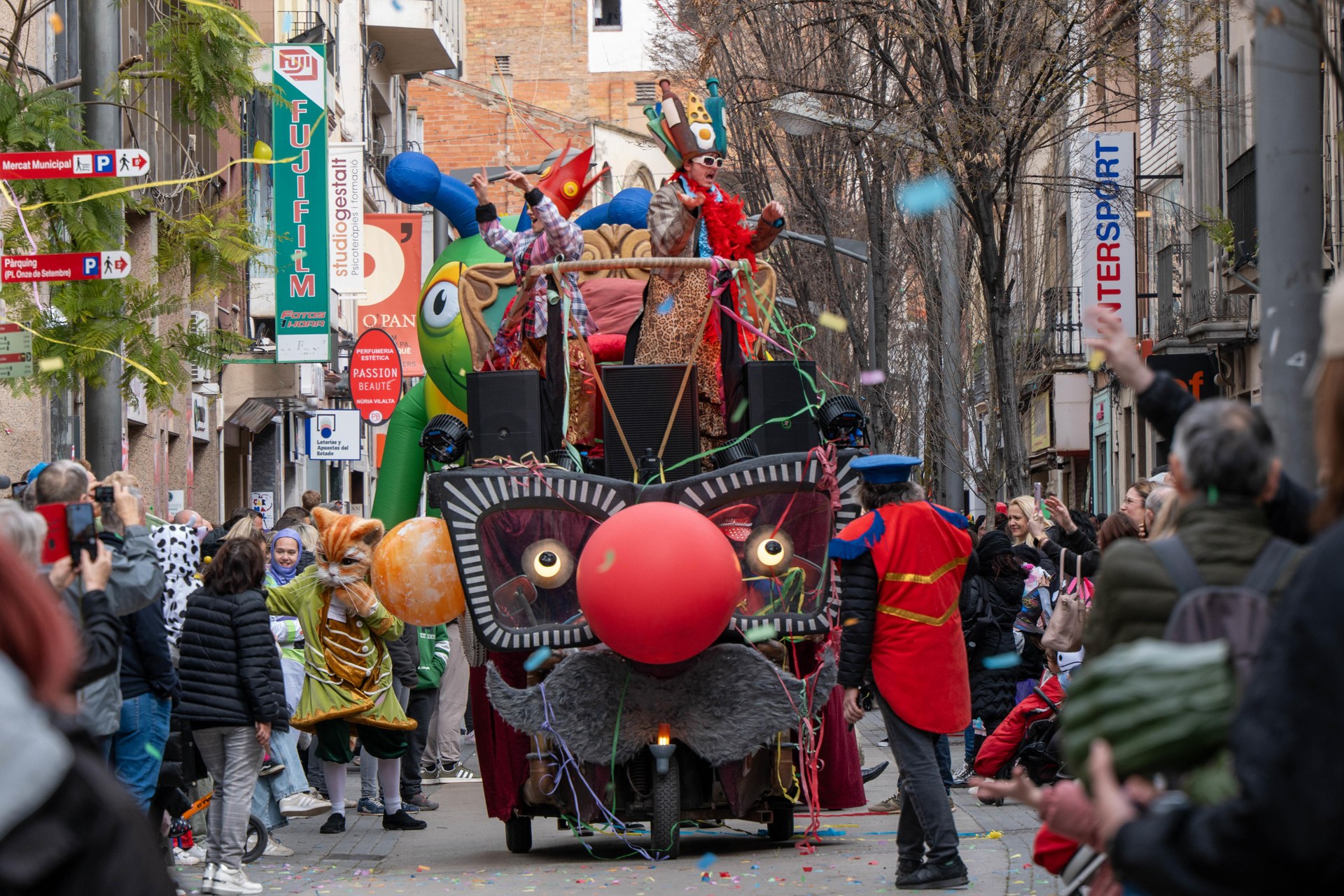 Catorze comparses van desfilar dissabte pel centre de la ciutat, encapçalades pel Rei Carnestoltes i la Reina Encarna, i amb l’acompanyament musical dels Tronats del Tabal de la Colla de Diables de la Riera i d'Explosió Rítmica, sumant prop de 1.500 persones. Enguany la rua estrenava recorregut precisament per poder absorbir la creixent participació a les comparses i permetre’n un millor lluiment. L’itinerari va començar a la plaça del Doctor Guardiet i va finalitzar a la rambla del Ferrocarril, on va tenir lloc la guerra de confeti i el ball, amenitzat pel duo de DJ intergeneracional Alegria’s Family. “S’ha demostrat que aquest canvi era positiu. Hem tingut moltíssima gent al carrer i a la rambla del Ferrocarril, i poder disposar de més espai ha possibilitat que tothom en pugués gaudir al màxim. Un cop més, ha estat un gran cap de setmana de Carnaval, amb una participació molt elevada de gent de totes les edats”, ha manifestat l’alcaldessa, Ana María Martínez Martínez.
