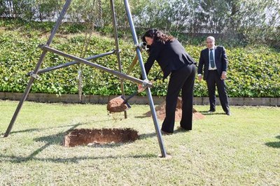L'alcaldessa participa a l'acte de col·locació de la primera pedra del nou centre logístic de Dermofarm