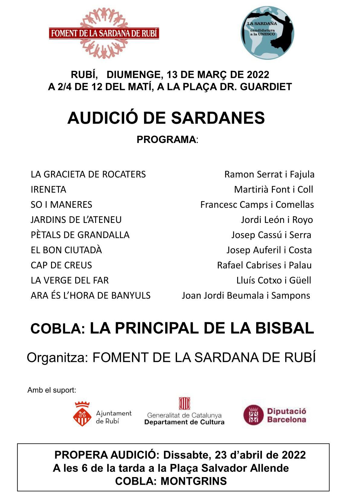 Cartel de la audición de sardanas del 13 de marzo