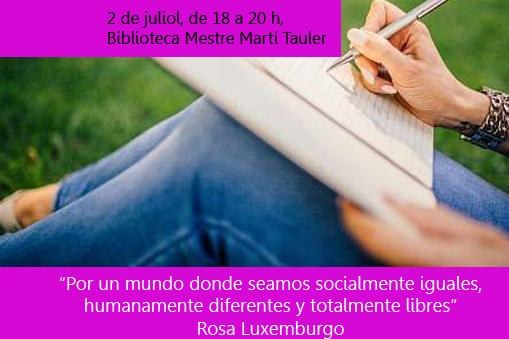 El taller de escritura creativa con mirada femenina, que se tenía que haber hecho el pasado más de marzo dentro de las actividades previstas en motivo del Día Internacional de las Muejres, tendrá lugar el próximo 2 de julio de 18 a 20 h en la Biblioteca Mestre Martí Tauler. La propuesta se suspendió a causa de la emergencia sanitaria provocada por la Covid-19 y con la progresiva vuelta a la normalidad se ha podido reprogramar. Bajo la coordinación de la escritora rubinense Gracia Pérez Cortés, las personas asistentes crearán pequeños relatos desde las experiencias personales, centrados en la igualdad y la libertad.