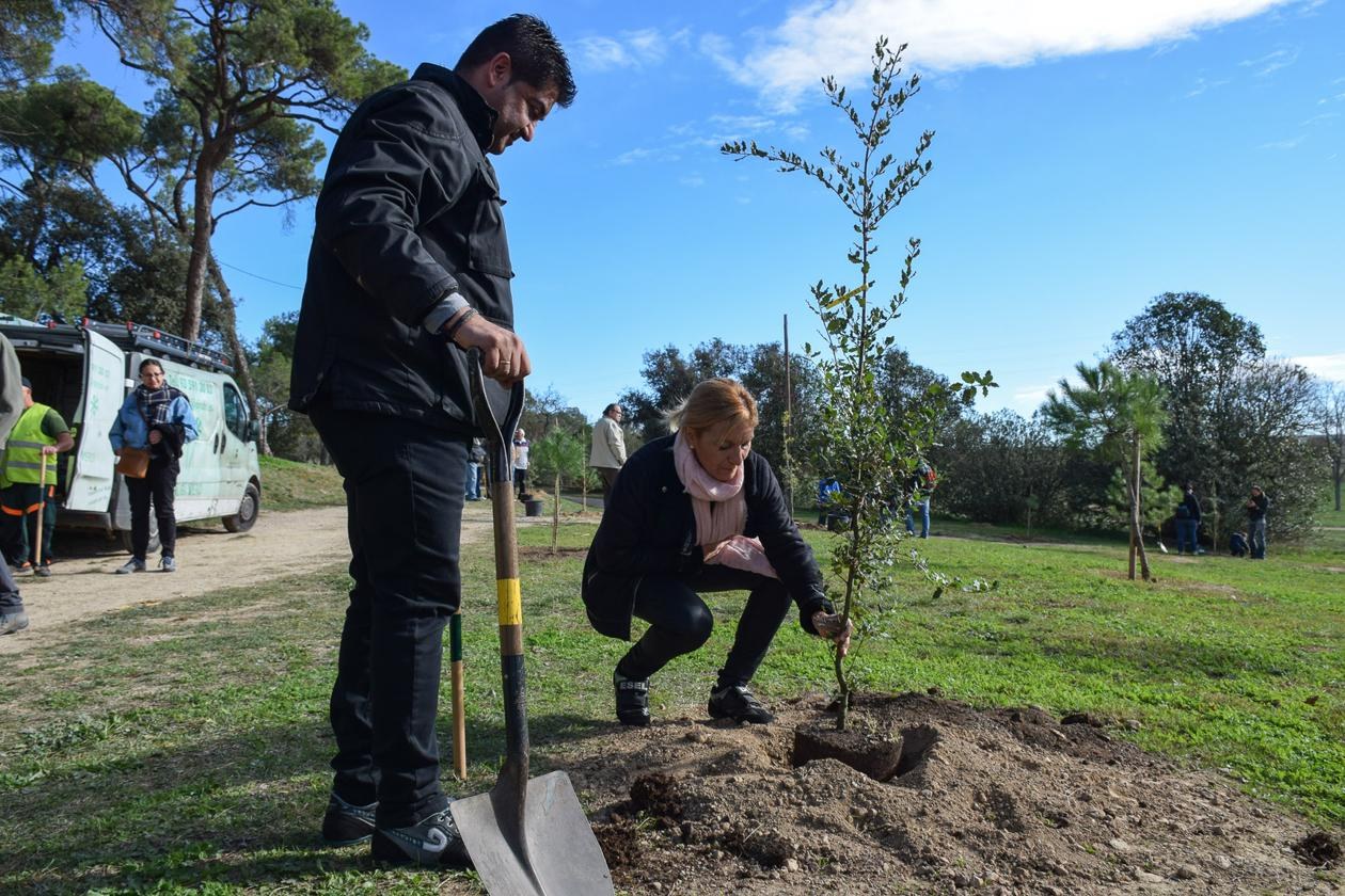 Unas 130 personas, entre niños y mayores, han participado este domingo en la 15ª plantada del Día del árbol autóctono. La cita, que ha tenido lugar en el bosque de Ca n'Oriol, también ha contado con la asistencia de la alcaldesa, Ana María Martínez, y de diferentes concejales.