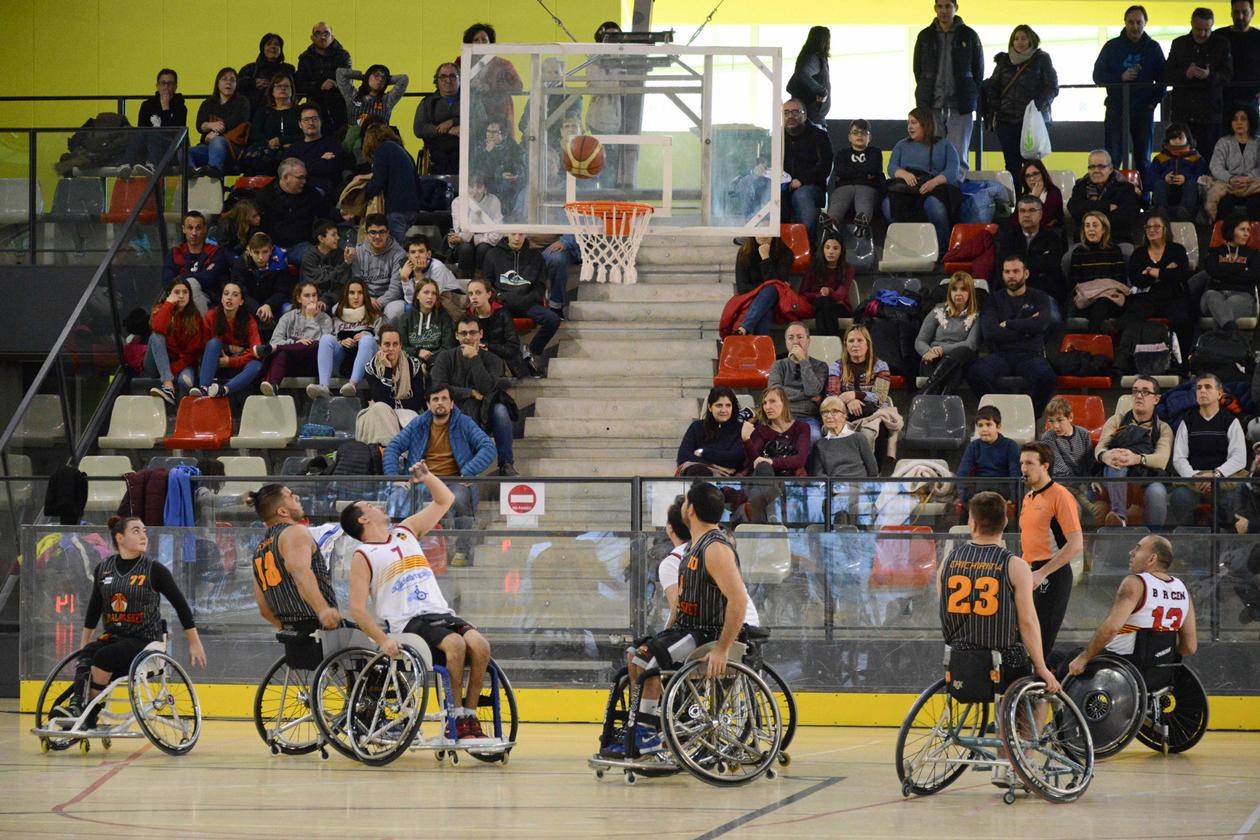 El CEB Sant Jordi ha organizado este sábado un partido de liga nacional de baloncesto en silla de ruedas en el pabellón de La Llana. La cita, que ha contado con la asistencia de la concejala del Área de Servicios a las Personas, Marta García, y del concejal de Deportes, Juan López, ha enfrentado al CE Global Basket UAB y al CEM Hospitalet.