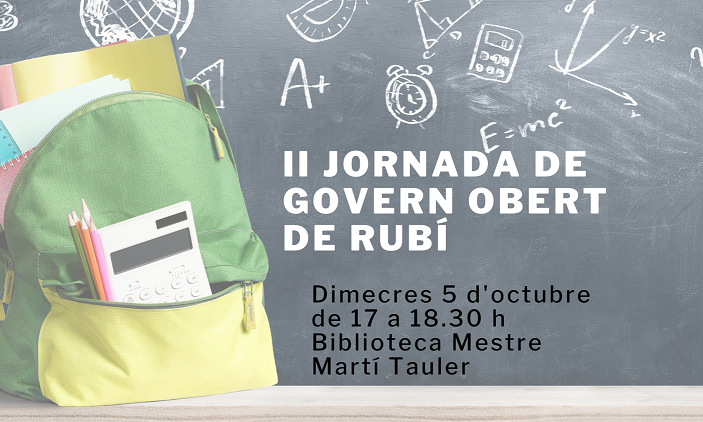 La segunda edición de la Jornada de Gobierno Abierto tendrá lugar el 5 de octubre en la Biblioteca Mestre Martí Tauler de 17 a 18.30 h. Esta edición sigue la línea de trabajo iniciada el pasado año y es acercar las herramientas de gobierno abierto a la ciudadanía. Si bien la primera edición hizo un recorrido por las diferentes plataformas que ofrece el Ayuntamiento de Rubí en materia de gobierno abierto, esta edición tendrá como hilo conductor los datos abiertos y la formación.