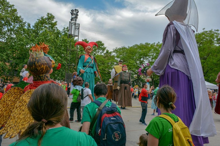 Una vez en la plaza de Ca n'Oriol, cada grupo ha hecho un baile de lucimiento y, después, se ha hecho la tradicional baile conjunto. Posteriormente, la fiesta se ha trasladado al patio de la escuela, donde todos los gegants invitados han recibido un recordatorio del evento y han disfrutado del concierto de un nuevo grupo local, Phenomenal People. Los más pequeños también han podido divertirse con talleres de dibujo, máscaras, chapas y peonzas.