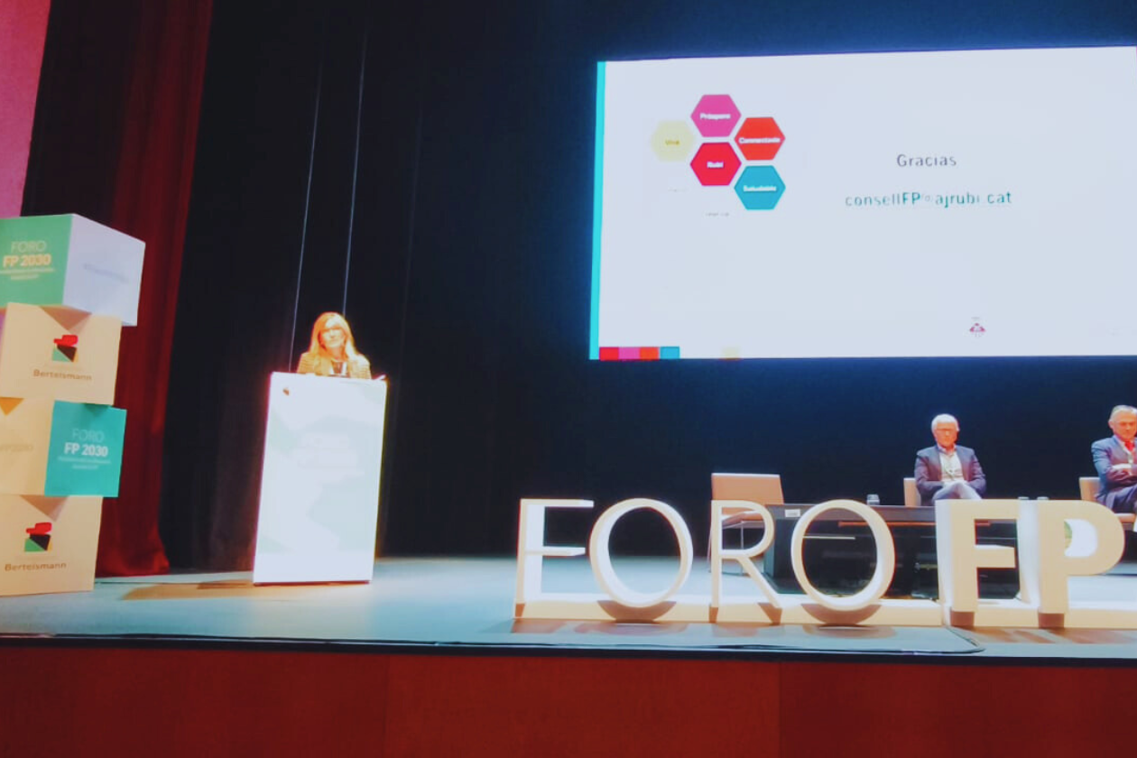 El Ayuntamiento de Rubí es el primer consistorio de toda España que incorpora alumnado de FP DUAL con contrato laboral en la administración local. Así lo ha explicado la alcaldesa, Ana María Martínez Martínez, en el Foro FP2030: Fortaleciendo la dimensión dual de la Formación Profesional, que se ha celebrado estos días en Pamplona, organizado por la Fundación Bertelsmann y la Confederación de Empresarios de Navarra, entre otros. El encuentro ha reunido a representantes de administraciones públicas, empresas, centros educativos y expertos en FP de todo el Estado para compartir buenas prácticas y debatir sobre el futuro de la formación profesional. " En Rubí creemos firmemente que la FP Dual es una política de empleo y de talento, no sólo de educación. Y que las administraciones locales tenemos un papel clave: demostrar, con hechos, que es posible ofrecer formación de calidad, oportunidades reales y empleo digno a los y las jóvenes", ha dicho la alcaldesa durante su intervención.