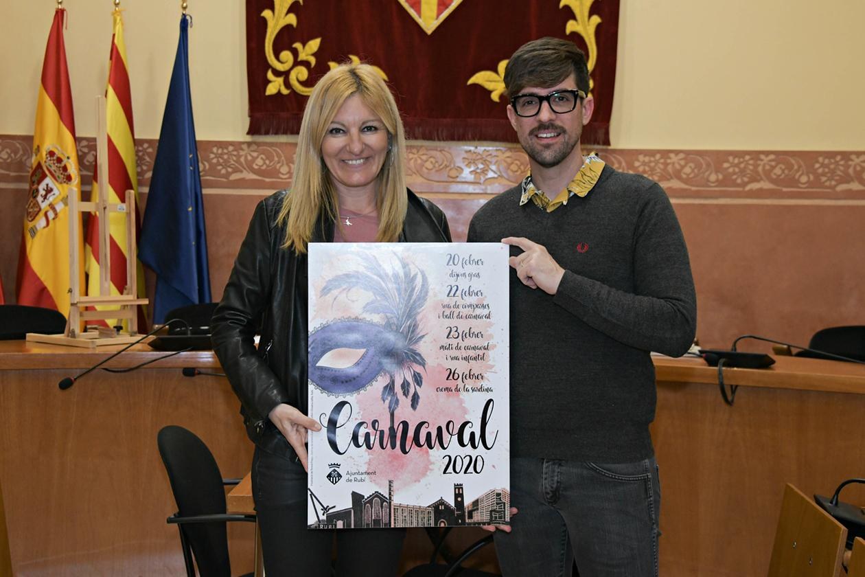 El Carnaval se promociona este año con un cartel realizado por Teresa Frago, alumna de los talleres de arte de la Escuela de Arte y Diseño edRa. El trabajo muestra, con la técnica de la acuarela, el clásico motivo carnavalero del antifaz, así como algunos construcciones emblemáticas de la ciudad: El Celler, la iglesia de Sant Pere, la Biblioteca Municipal Mestre Martí Tauler y la escultura Inercia. Todo ello rodeado de un estallido de color que se corresponde a la temática central del Carnaval de este año.