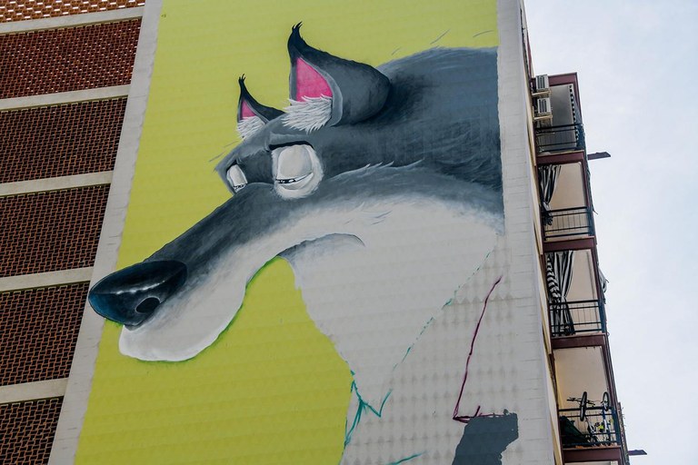 Mural de la plaza de la Constitució desde la distancia